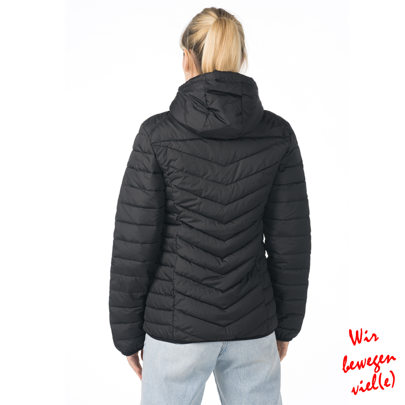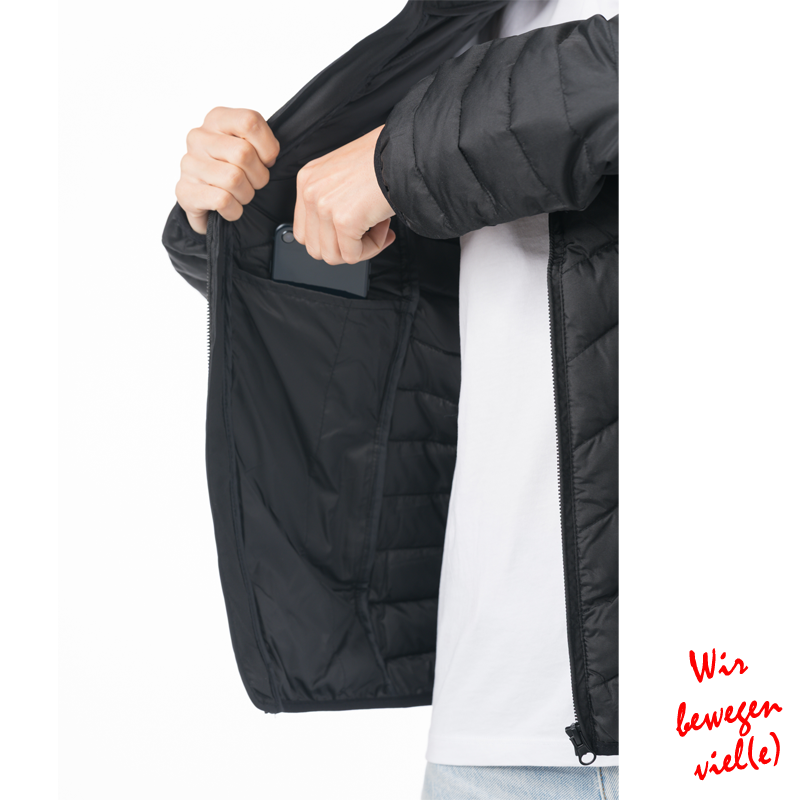 Die Steppjacke ist sehr leicht und hält dich bei niedrigeren Temperaturen dennoch schön warm. Dafür sorgen zusätzlich der hohe Kragen und die Kapuze. Dank dem elastischen Einfassband an den Ärmeln und dem Saum kann keine kalte Luft eindringen und die Jacke sitzt gleichzeitig optimal. In den seitlichen Reißverschlusstaschen und der praktische Innentasche kannst du deine Wertgegenstände sicher unterbringen. Abgerundet wird die Steppjacke mit dem gerippten Kragen, der für einen hohen Tragekomfort sorgt.