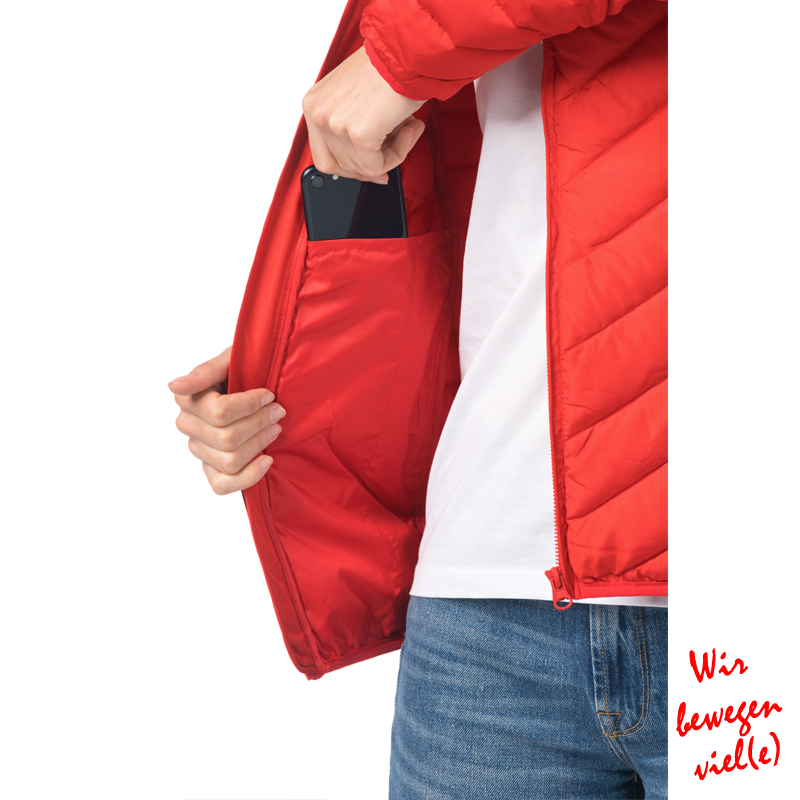 Die Steppjacke ist sehr leicht und hält dich bei niedrigeren Temperaturen dennoch schön warm. Dafür sorgen zusätzlich der hohe Kragen und die Kapuze. Dank dem elastischen Einfassband an den Ärmeln und dem Saum kann keine kalte Luft eindringen und die Jacke sitzt gleichzeitig optimal. In den seitlichen Reißverschlusstaschen und der praktische Innentasche kannst du deine Wertgegenstände sicher unterbringen. Abgerundet wird die Steppjacke mit dem gerippten Kragen, der für einen hohen Tragekomfort sorgt.
