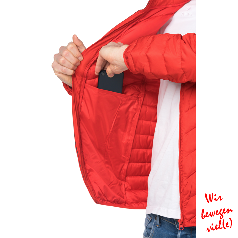 Die Steppjacke ist sehr leicht und hält dich bei niedrigeren Temperaturen dennoch schön warm. Dafür sorgen zusätzlich der hohe Kragen und die Kapuze. Dank dem elastischen Einfassband an den Ärmeln und dem Saum kann keine kalte Luft eindringen und die Jacke sitzt gleichzeitig optimal. In den seitlichen Reißverschlusstaschen und der praktische Innentasche kannst du deine Wertgegenstände sicher unterbringen. Abgerundet wird die Steppjacke mit dem gerippten Kragen, der für einen hohen Tragekomfort sorgt