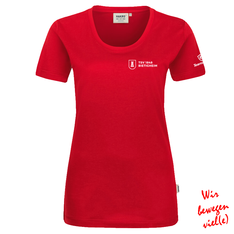 Veredelung: TSV Bietigheim Logo Vorderseite auf der Brust links, Rückseite: Claim "Wir bewegen viel(e)".