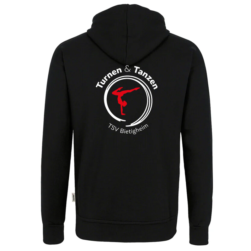 : TSV Bietigheim Turnen & Tanzen Logo Vorderseite auf der Brust klein, Geräteturnen Logo hinten auf dem Rücken in groß