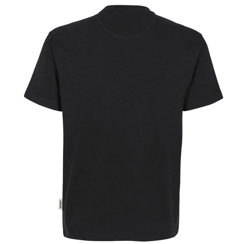Besonders strapazierfähiges T-Shirt mit Rundhalsausschnitt, geripptem Halsbündchen und Nackenband. Leasingkoller zur einfachen Kennzeichnung in der gewerblichen Wäscherei und Aufhängebänder im Saum. Mittelschwerer, besonders pflegeleichter und funktioneller Single-Jersey aus MIKRALINAR®, dem HAKRO Performance-Materialmix aus Baumwolle und Polyester. Verfügbar auch als Damenmodell mit V-Ausschnitt.